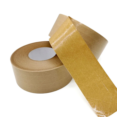 Băng giấy Kraft mặt phẳng có gia cố tự dính được hỗ trợ bằngmật độ cao fthủy tinh gia cường giấy thủ côngvà phủ keo nóng chảy.